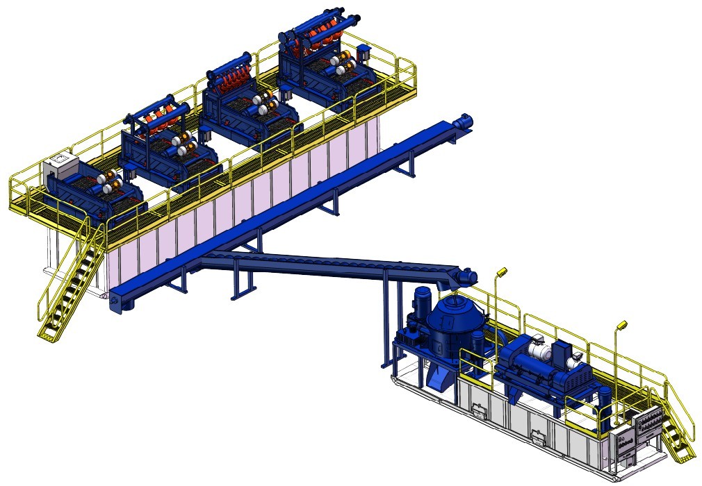 鉆井廢棄物處理系統又被稱作泥漿不落地系統、隨鉆泥漿不落地處理系統,按照用途又分為:水基泥漿不落地系統和油基泥漿不落地系統。 北鉆固控油基泥漿不落地系統處理過程:待處理的鉆井液泥漿被輸送到鉆屑干燥機上,處理后的鉆井液泥漿輸送到鉆井液離心機中進一步處理,鉆井液離心機處理完畢后的泥漿液體被重新注入到泥漿循環系統中,處理后的固相廢棄物被運送到巖屑箱中。 北鉆固控油基泥漿不落地系統的設備主要包括:鉆屑干燥機、臥螺離心機、螺桿泵、螺旋輸送機、巖屑箱等。 油基泥漿不落地系統的典型布置及處理流程如下: 北鉆固控水基泥漿不落地處理過程:待處理的泥漿通過管匯輸送到高頻干燥振動篩上處理,處理后的泥漿鉆井液通過螺桿泵進入巖屑離心機,進一步處理,處理后的泥漿進入泥漿罐攪拌再一次注入到泥漿循環系統中。處理過程中留下來的廢棄物通過螺旋輸送機輸送到巖屑箱中拖出場地進行掩埋或者其它處理。 北鉆固控水基鉆井液泥漿不落地系統的設備主要包括:高頻干燥振動篩、臥螺離心機、螺桿泵、螺旋輸送機、泥漿罐和巖屑箱等。 北鉆固控是一家專業的鉆井廢棄物泥漿不落地處理系統的生產廠家,歡迎廣大客戶來電咨詢鉆井廢棄物/泥漿不落地處理系統,北鉆固控將為廣大客戶提供滿意的廢棄物處理系統技術方案和服務。
